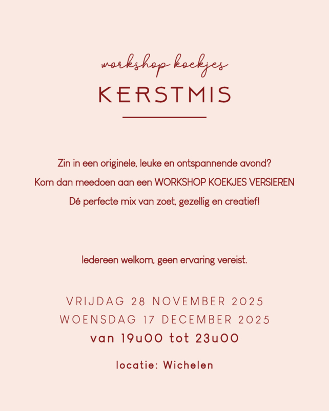 We nemen je stap voor stap mee door het proces, en je gaat naar huis met je eigen prachtig versierde koekjes.